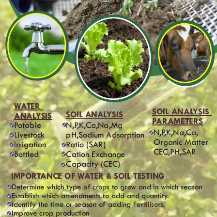 Precision electronic instruments that include Photometers, Atomic Absorbance Spectrophotometer, Hydrocarbon Analyser, pH, TDS, Turbidity , Dissolved Oxygen, Chlorometer and conductivity meters among others are used to conduct tests and produce immediate, accurate and repeatable results on the following tests and elements: Calcium hardness, Magnesium, Chloride, Potassium, Hardness CaCO3, Sulphates, Nitrates, Fluorides, Alkalinity, Odour, and Colour, pH, heavy metals Manganese, Chromium, Lead, Nickel, Cobalt, Copper, Zinc, Cadmium, Iron, Mercury, Arsenic, Aluminium and Selenium ), turbidity, dissolved oxygen, TDS and conductivity.